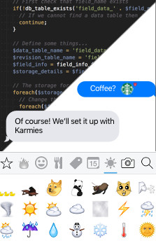 Karmies is launching a first-ever interactive emoji keyboard iMessage App extension for Apple Messages. Join our mailing list to get first access.